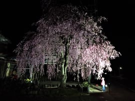 真っ暗闇にポツンと佇む一本桜は