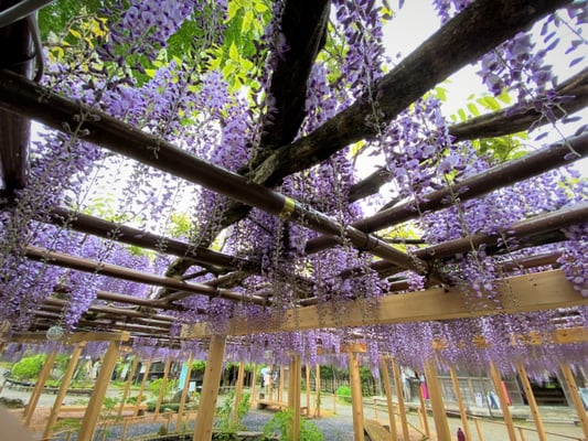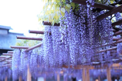 春の雨滴る、大藤棚の艶やかさ…。